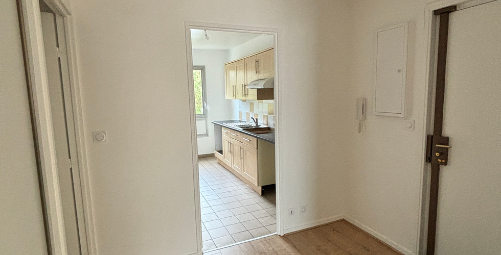 une entrée avec placard, une cuisine aménagée, un séjour, une salle de bain, une salle de douche, un WC, un grand balcon, 3 chambres. Une place de parking intérieure & extérieure et une cave lui sont réservés.